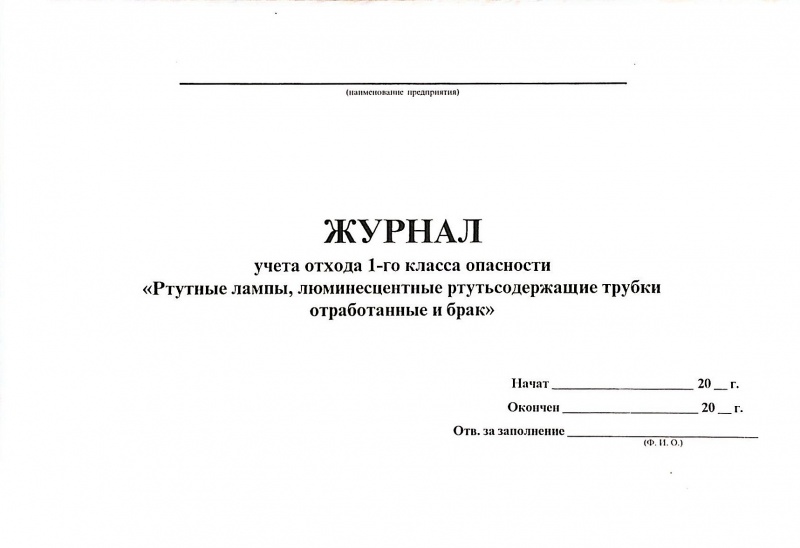 Журнал учёта отхода I-ого класса опасности